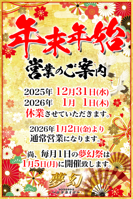 12月31日(水)〜1月1日(木)はお休みとさせて頂きます